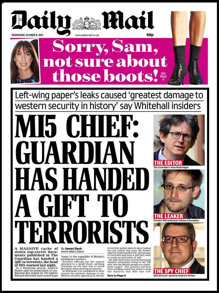 Guardian has handed a gift to terrorists', warns MI5 chief: Left-wing paper's leaks caused 'greatest damage to western security in history' say Whitehall insiders